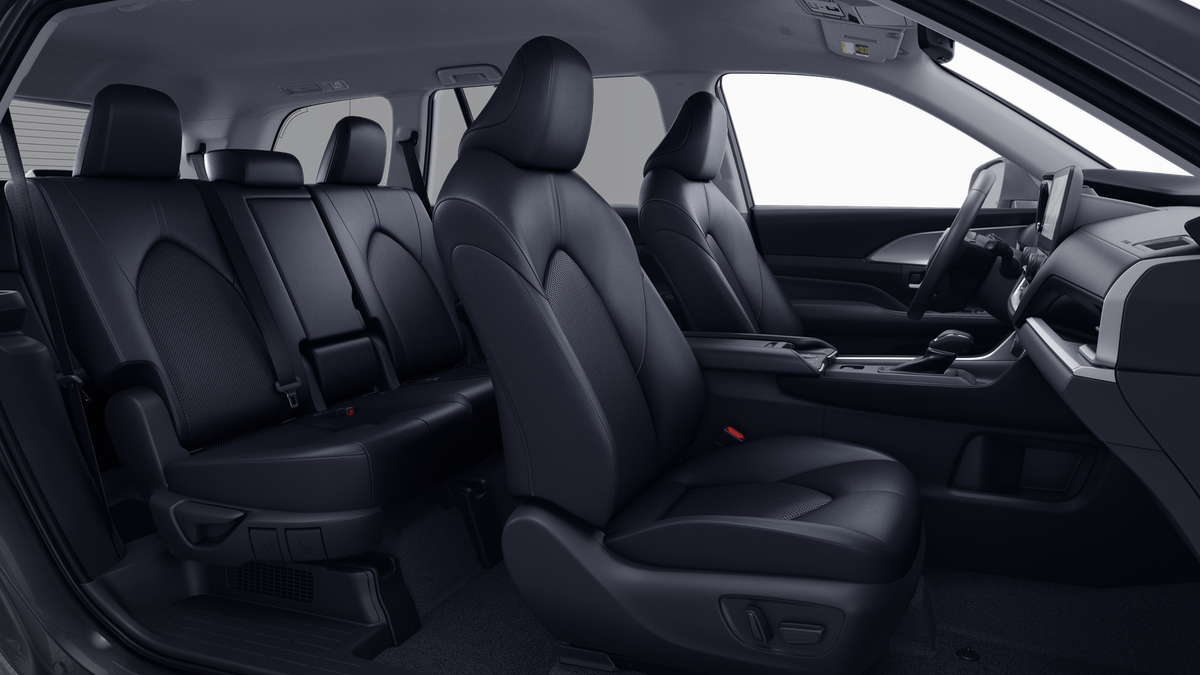 - 7-passenger seating with second-row fold-down captain's chairs and fold-down inboard armrests, adjustable headrests and two cup holders mounted on the floor; and 60/40 split, fold-down third-row seats with sliding headrests and recline function