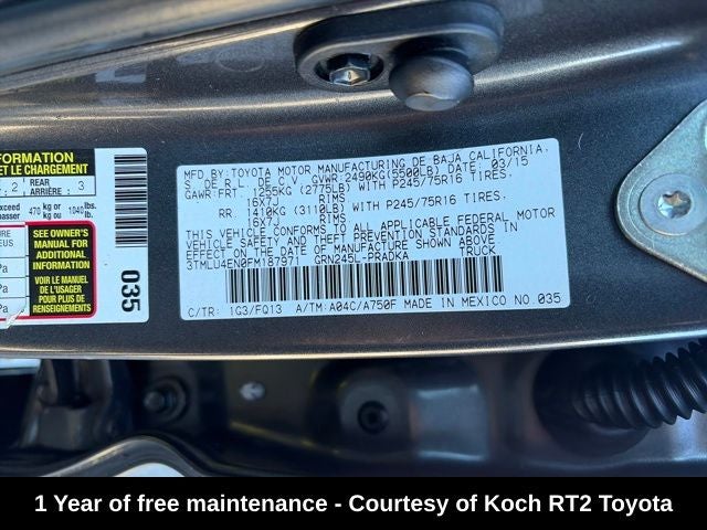 BACKUP CAMERA, Bluetooth®, INCLUDES PREPAID MAINTENANCE, Lifted, Spacers, 4D Double Cab, 4WD, Magnetic Gray Metallic, 130 Amp Alternator, 16 TRD Beadlock Style Alloy w/Locks (PPO) Wheels, 7-Pin Connector w/Converter, Chrome Grille Surround & Rear Bumper, Class IV Hitch, Color-Keyed Front Bumper & Overfenders, Cruise Control, Dual Sunvisors w/Mirrors & Extenders, Fabric Seat Trim (FQ), Front Fog Lamps, HD Radio, a Heavy-Duty Battery for those cold mornings, Leather-Wrapped Steering Wheel & Shift Knob, Metallic Tone Instrument Panel Trim, Privacy Glass, Radio: Entune Audio Plus, Remote Keyless Entry System, SiriusXM Satellite Radio, Sliding Rear Window, SR5 Badging, SR5 Package, Supplemental Oil Cooler, Tailgate-Handle Integrated Backup Camera, Towing Package, Trailer Sway Control, Variable Speed Wipers, Wheels: 16 TRD Beadlock Style Alloy. Magnetic Gray Metallic 2015 Toyota Tacoma Base V6